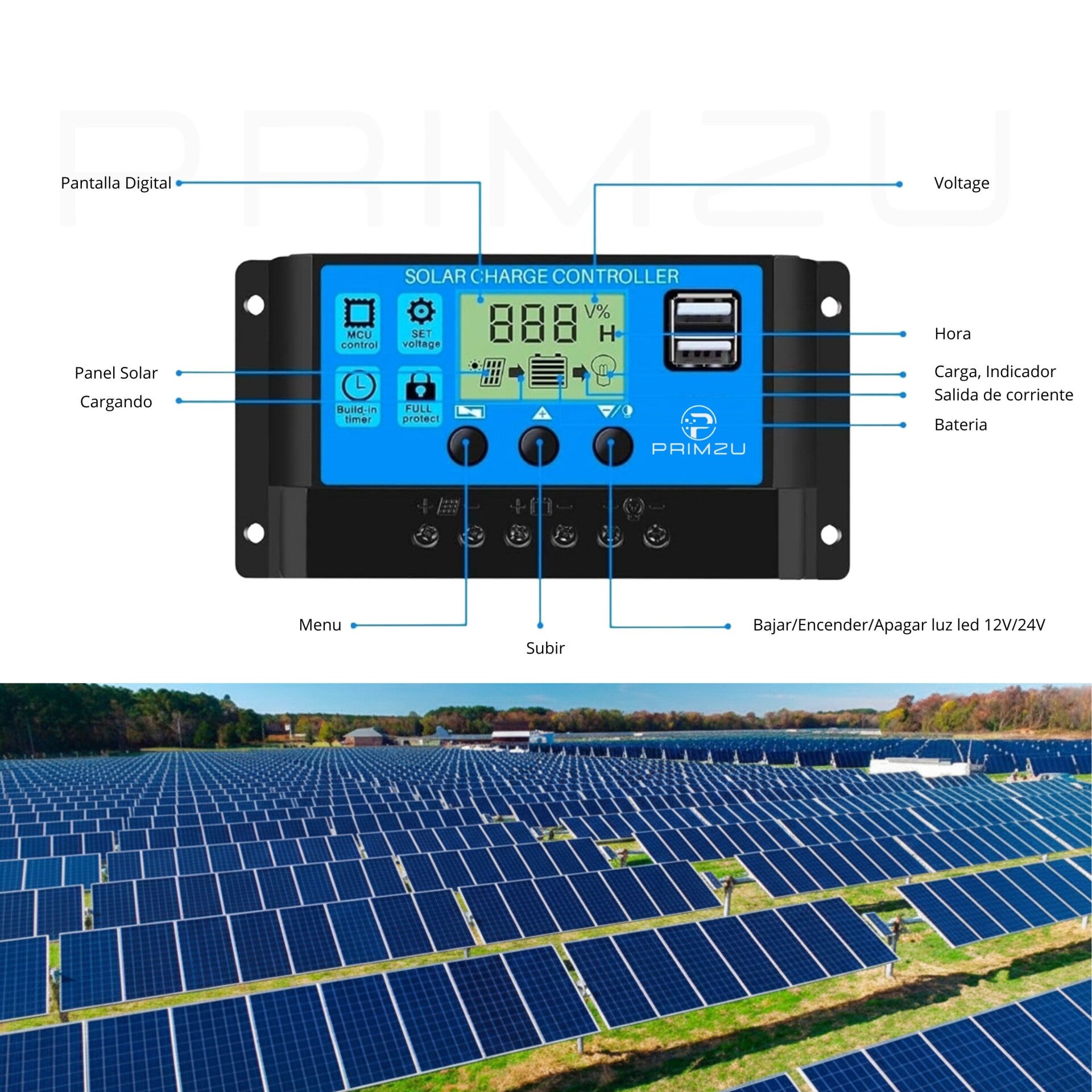 CONTROLADOR SOLAR DE 12/24 VOLTIOS
